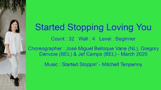 Started Stopping Loving You er en 32/4 beginner linedance med et roligt, musikalsk flow og trin, der er lette at lære. Den er perfekt til sociale gulve, hvor både begyndere og øvede kan nyde musikken sammen.
