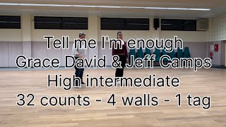 Tell Me I’m Enough er en storslået, flot 32-count, 4-wall nightclub linedance på advanced-niveau, koreograferet af Grace David fra Sydkorea og Jef Camps fra Belgien i januar 2025. Dansen kombinerer det bløde stilfulde med teknisk krævende trin, mange drej og holdtakter. En avanceret med intensitet og udtryk. Grace David og Jef Camps er to internationalt anerkendte koreografer, kendt for deres evne til at skabe koreografier, der både teknisk og kunstnerisk er velafbalancerede. "Number One Girl" af ROSÉ er et følelsesladet popnummer med en stærk vokal og en melodi, der bygger op i intensitet. Sangen er en blanding af pop, ballade og R&B-elementer, ROSÉ, kendt fra BLACKPINK, er en sydkoreansk soloartist med en stor karakteristisk vokal og en unik evne til at formidle følelser gennem sin musik. Hendes sange kombinerer vestlig pop med K-pop-elementer, hvilket gør dem både relaterbare og kunstnerisk stærke. Number One Girl balancerer mellem styrke og sårbarhed med dybde og dramatik.