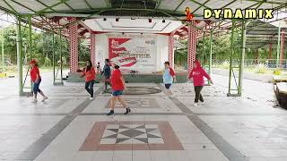 6-8Shift weight to R bumping hips Rt (6), Shift weight to L bumping hips L (7), Hold (8)