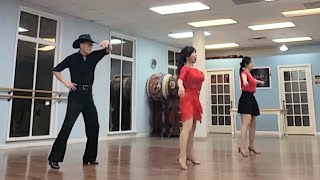 1, 2&Step R to right side (big step), step L slightly behind L, step R across L