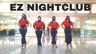 Walk fwd x2, ¼ pivot turn-cross, left nightclub basic, weave right