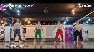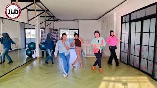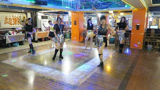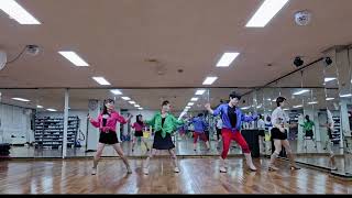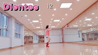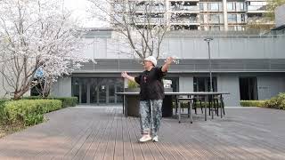 1-2Step forward on RF and Take R hand back and L hand forward (Rotating body to the R slightly), Step forward on LF Clap hands (returning body to front)