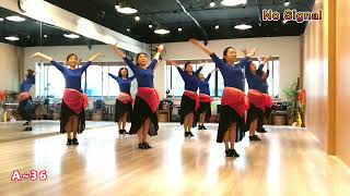 [33 – 36] Stomp R next to L, arms go up in a circle