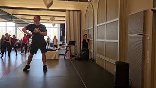3 – 4Step fwd on L (3), turn ½ L stepping back on R (4) … Note: bring arms down 6:00