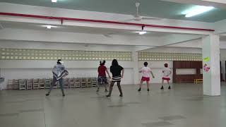 [10 – 17] Hold, ball side, Hold, ball R hip bump, L hip bump, ¼ L sit/pop knee, L step lock step