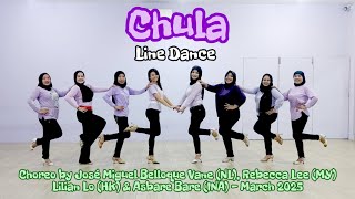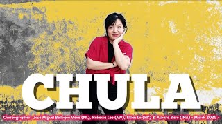 Chula er en festlig 32-count, 4-wall linedance på improver-niveau, koreograferet af José Miguel Belloque Vane (Holland), Rebecca Lee (Malaysia), Lilian Lo (Hongkong) og Asbare Bare (Indonesien) i marts 2025. Dansen har et energisk flow med latin-inspirerede trin og sjove spark og kick, der afspejler musikkens livlige rytmer og farverige karakter. Et tempofyldt beat med attitude og flair. De fire koreografer er kendt internationalt for deres kreative og musikalsk stærke koreografier. "Chula" af Grupo Firme & Demi Lovato er et eksplosivt samarbejde mellem mexicansk regionalmusik og amerikansk pop. Sangen har en markant rytme, stærk vokal og en selvsikker tekst, der skaber en festlig og kraftfuld stemning på dansegulvet. Grupo Firme er et af de mest populære banda-grupper i Latinamerika, kendt for deres moderne tilgang til regional mexicansk musik. Demi Lovato tilføjer et internationalt pop-touch med sin kraftfulde stemme.