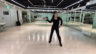 [33 – 40] R touch & heel X 2, R fwd, 1/8 R flick L, L shuffle fwd