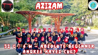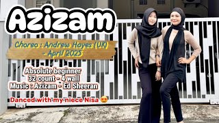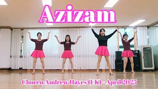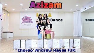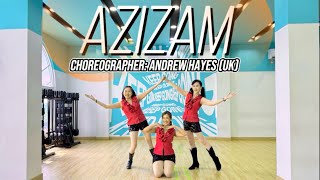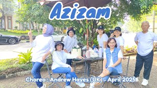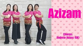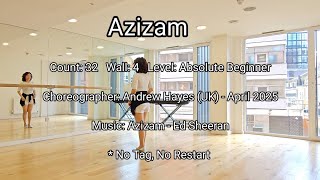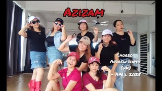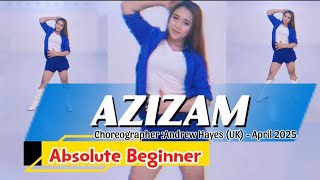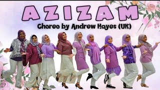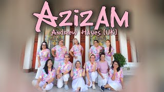 Andrew Hayes fra Storbritannien er kendt for at skabe begyndervenlige koreografier med god musikalitet og fokus på trin, der føles naturlige. Azizam er et eksempel på hans evne til at lave danse, der passer perfekt til sangens særlige rytme og stemning.