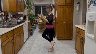 Sec 4: 1/8 L STEP FWD, HITCH, 1/8 R STEP BACK, ¼ R STEP FWD, KICK, BACK, HOOK, HOLD W/CLAPS