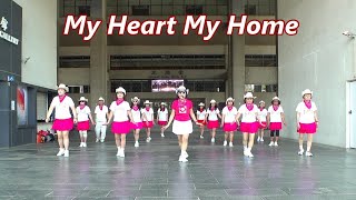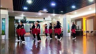 5-6Step right to right dragging left towards right, step left beside right popping right knee forward