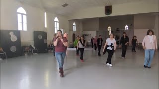Optional Arms: Waving both arms from L to R (counts 5,6) and from R to L (counts 7,8)