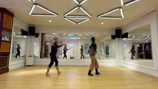 [17 – 24] R samba whisk, L samba whisk ¼ L, R samba whisk ¼ L, L&R hip sways
