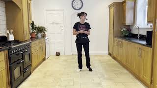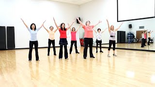 1 – 4Turn ¼ L stepping R to R side – Start raising R arm in R diagonal (1), Continue rising R arm (2 – 4) (keep arm up for the next 4 counts) 12:00