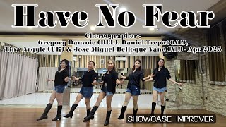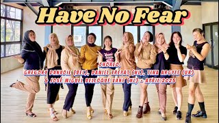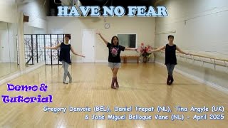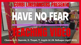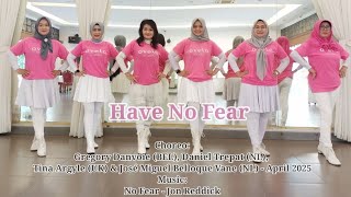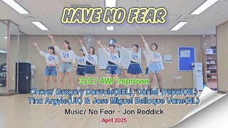 Have No Fear er en lækker opløftende 32-count, 4-wall linedance på improver-niveau, koreograferet i april 2025 af et stærkt internationalt team: Gregory Danvoie (Belgien), Daniel Trepat og José Miguel Belloque Vane (Holland) samt Tina Argyle (Storbritannien). Dansen har en blød, rytmisk stil med positiv energi og et naturligt flow, der afspejler musikkens budskab om tro, styrke og mod. De fire koreografer er kendt for at skabe danse med både teknisk balance og stor appel. I Have No Fear forenes deres erfaring og stilarter i en dans, der er let at lære, men stadig fuld af udtryk og bevægelsesglæde. "No Fear" af Jon Reddick er en inspirerende og melodisk gospel-pop sang med en stærk rytme og et håbefuldt budskab. Musikken opfordrer til at slippe frygten og finde styrke i tro og fællesskab. Jon Reddick er en amerikansk singer-songwriter og lovsangsleder, kendt for sin varme stemme og stærke tekster. Hans musik kombinerer gospel, soul og moderne pop – og No Fear er et smukt eksempel på hans evne til at inspirere gennem musikken.