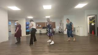 4 – 5 &Step L forward & sweep R forward (4), Cross R over L (5), Step L to L side (&),