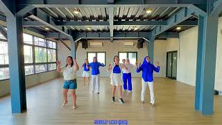 5, 6, 7, 8Step R fwd, Kick L fwd, Step L back, Touch R back
