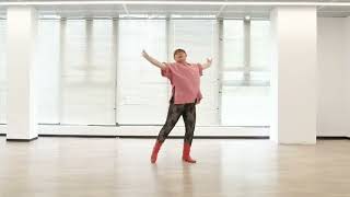 5 – 6Step R to R side – arm movements: in front of body, cross both hands in, out, in and open arms in a big circle from arm position 5 to 2 (5), Step L to L side (6) 6:00