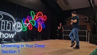 [1 – 9] Heel Grind & ¼ Turn R, Recover, Coaster Step, Sweep, Cross, Side, ⅛ Turn L, Step Back & Hook, Step Fwd, Pivot ½ Turn R 2x, Sweep, ⅛ Turn R, Cross, ¼ Turn L, Step Back, ¼ Turn L, Step L, Collect