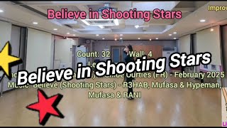 Believe In Shooting Stars er en 32/4 improver linedance, moderne og energisk. Dansen bygger på et pop-/EDM-nummer og indeholder trin, der matcher musikkens rytmiske energi.