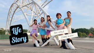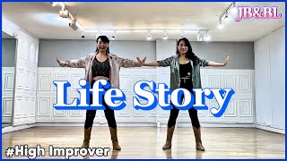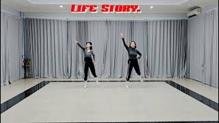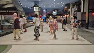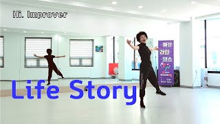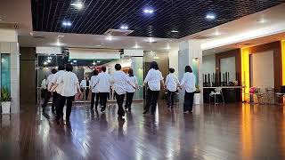 Section 6: Step fwd, pivot with 1/2 turn, step-lock-step fwd with sweep fwd, cross-back-back X2, flick behind