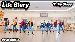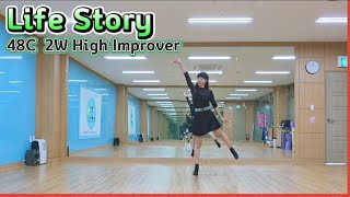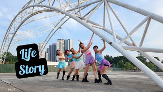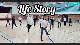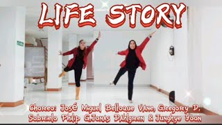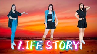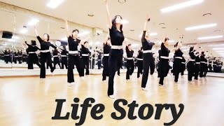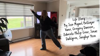 3&4LF step forward, RF cross behind LF, LF step forward with a RF sweep forward (06:00)