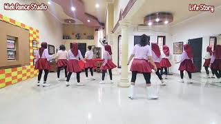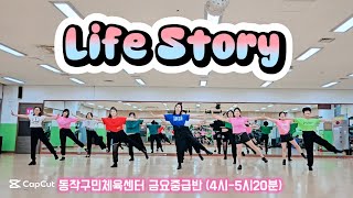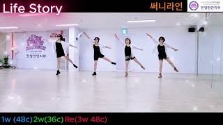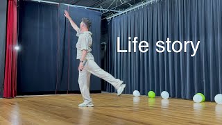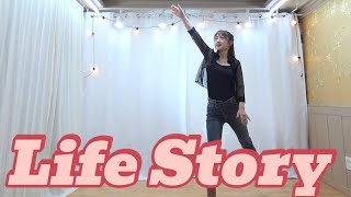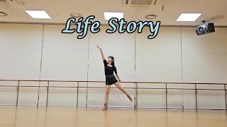 Section 2: Step forward with back flick, together and down, run-run, rock fwd, recover with back sweep, step back with back sweep, coaster step, ball