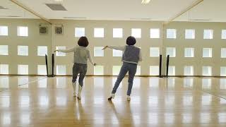 7-8Step RF forward (7), Turn 1/2 L @1:30 with knees bent while keeping weight on RF (8)