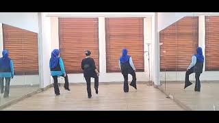 3-4Turn 1/2 L @9:00 touching LF to L side and bumping hip (3), Step LF on spot (4)
