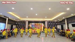 &5-8Jump Fwd R, Jump Fwd L, Shake Hips for 3 Counts