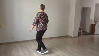 1-4Step right on right toes. Drop right heel. Cross left toes over right. Drop left heel.