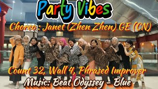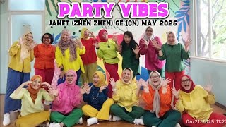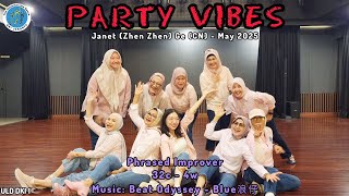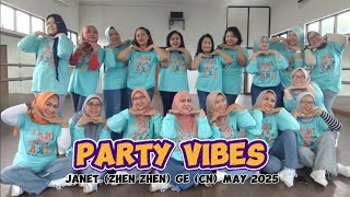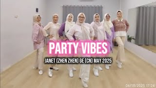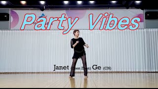 Party Vibes er en legende og moderne 32/4 phrased improver-linedance, koreograferet af Janet (Zhen Zhen) i maj 2025. Dansen kombinerer funky trin med rytmiske skift og små detaljer, der matcher musikkens klubinspirerede beat. Den er ideel til dansere, der nyder en dans med attitude, energi og stil.