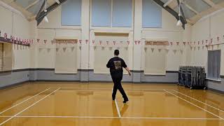 5-6Turn ⅜ stepping forward left, step right slight behind left heel. (11:30)