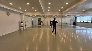 3-4¼ turn left & step left forward, touch right to left (9:00)