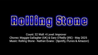 Rolling Stone er en rytmisk og energisk 32/4 linedance på improver-niveau, koreograferet af Maggie Gallagher (UK) og Gary O’Reilly (IRE) i maj 2025. Dansen er bygget op med skarpe vægtskift, solide rytmer og en naturlig flow, der fanger stemningen i musikken. Den er oplagt til dansere, der vil have både groove og god energi.