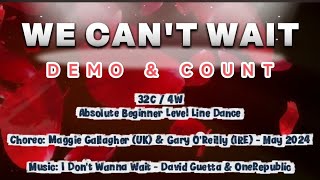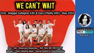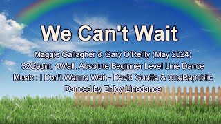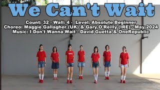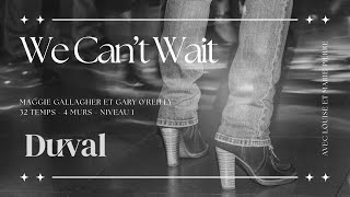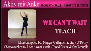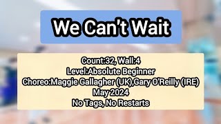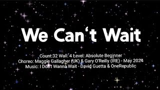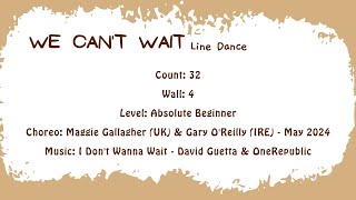 We Can’t Wait (87) er en 32/4 absolute beginner linedance, let, moderne og fuld af feel-good energi. Den er designet til helt nye dansere, men musikkens pop-/dance-stil giver den et frisk og ungdommeligt udtryk, som gør den sjov på sociale gulve.