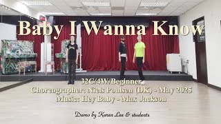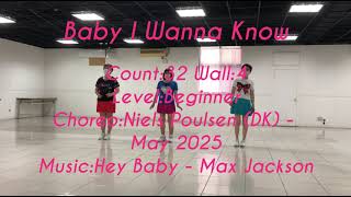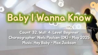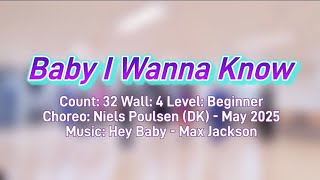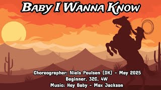 ÅRSDANS: Baby I Wanna Know er en east coast swing old rock country inspireret 32/4 beginner-linedance, koreograferet af Niels Poulsen (Danmark) i maj 2025. Dansen er bygget op af enkle, men sjove trin, der følger sangens kvikke tempo og glade stemning. Den er velegnet til begyndere og sociale dansere, som ønsker en ukompliceret og hyggelig dans, som har sine egne karakteristika.