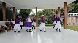 [25 – 32] Stomp R, Hold, ball side, L side point, rolling vine L, touch together
