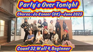 Party’s Over Tonight er en funky og let 32/4 beginner-linedance, koreograferet af Jo Kinser (UK) i juni 2025. Dansen har et glat disco-flow og er fyldt med små, stilfulde bevægelser, der passer perfekt til musikkens retroklang og let melankolske energi. Den er ideel til nye dansere, der vil have noget med lidt glans og glitter.