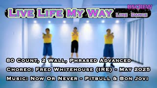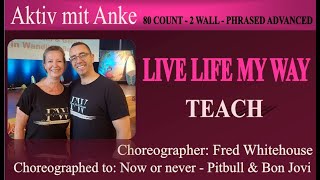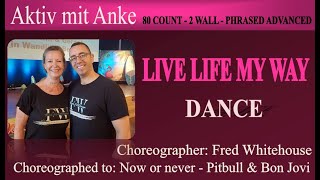 Live Life My Way er en eksplosiv og stilsikker 80/2 phrased advanced-linedance, koreograferet af Fred Whitehouse (Irland) i maj 2025. Med skiftende fraseringer, præcise overgange og stærke udtryk kræver dansen både teknisk kunnen og scenisk attitude. Den er skabt til dansere, der vil give alt – med kraft, rytme og performance i fokus.