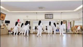 5,6,7,85) Step R to right pushing hips right; 6) Keeping feet shoulder width apart push hips left; 7) Push hips right; 8) Push hips left