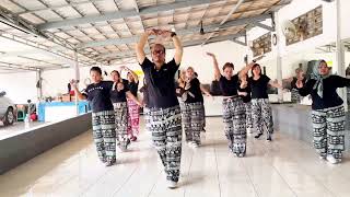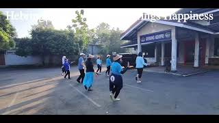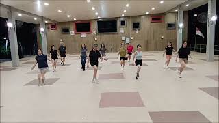 5-8Step R Back as you place R hand on L shoulder (5), HOLD (6), Close L next to R as you place L hand on R shoulder (7), HOLD (8)