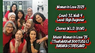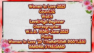 Woman In Love 2025 er en elegant og følelsesfuld 32/4 high beginner-linedance, koreograferet af W.L.D. fra Sydkorea i juni 2025. Dansen er bygget op med klassiske og flydende trin, som følger musikkens dramatiske opbygning og bløde groove. Den egner sig godt til dansere, der ønsker en stille, men udtryksfuld linedanceoplevelse.