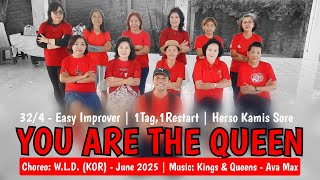 You Are The Queen er en energisk og selvsikker 32/4 easy improver linedance, koreograferet af W.L.D. fra Sydkorea i juni 2025. Dansen kombinerer power-moves og feminine accenter, der matcher sangens stærke budskab og pulserende tempo.