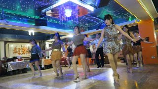 Section 4 R fwd rock, recover, back shuffle, back rock, recover, fwd, 1/2 R