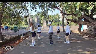 Section 1 R fwd, hold, ball, fwd, tap, diag. back touch, diag. back, touch