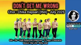 Don't Get Me Wrong er en livlig 64/2 high beginner / improver dans koreograferet af Chika Hapsari (Indonesien) i juli 2025. Trinene er tilgængelige for dansere med lidt erfaring, men stadig med plads til udfordring i tempo og variation.