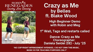Crazy As Me er en livlig og let tilgængelig 32/4 beginner linedance i country/pop-stil. Dansen har en god energi og et naturligt flow, der gør den velegnet til både begyndere og sociale dansegulve. Den kombinerer simple trin med en frisk attitude, som matcher musikkens karakter.