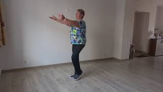 1-21/8 turn right & step right forward, step left forward (option both arms up) (7:30)