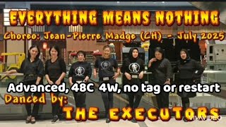Everything Means Nothing er en følelsesladet og teknisk udfordrende 48/4 advanced linedance med langsomt tempo, dyb musikalitet og stærkt emotionelt udtryk. Den kræver kontrol, præcision og evnen til at fortolke musikken med både krop og hjerte – en dans for dem, der elsker intensitet og indlevelse.