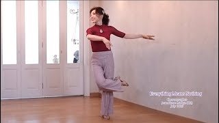 1-2-3Step R forward (1), Bring slowly L foot behind R knee (2-3)